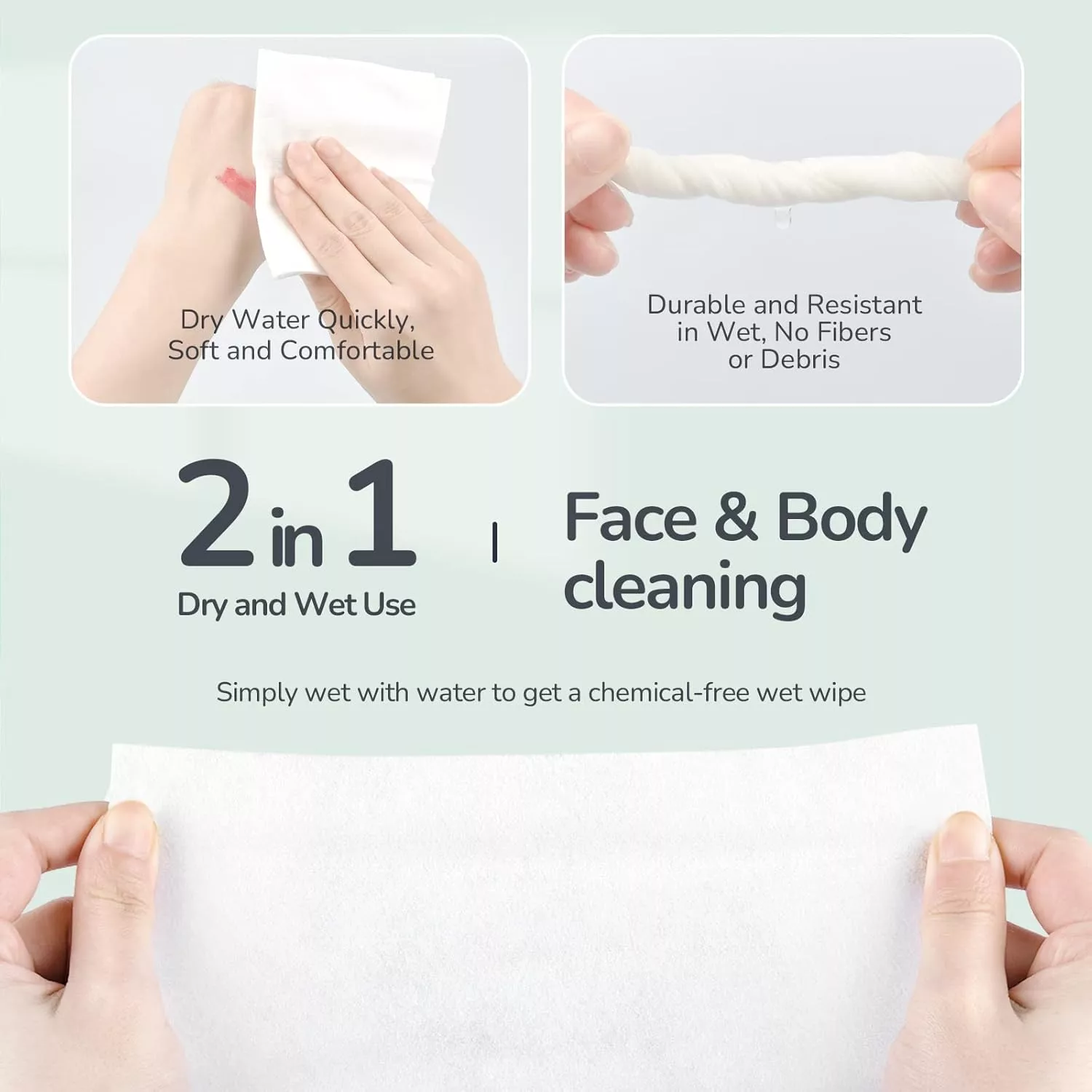 မျက်နှာသုတ်ပုဝါမျက်နှာ100% သဘာဝဆွေးမြေ့ပျက်စီးနိုင်သည့်ဝါဂွမ်းဖြင့်ပြုလုပ်ထားသောကြောင့်နူးညံ့ပျော့ပျောင်း။ အရေပြားနှင့်နူးညံ့သိမ်မွေ့ခြင်း, နူးညံ့သိမ်မွေ့ခြင်းမရှိခြင်း,
